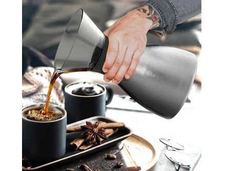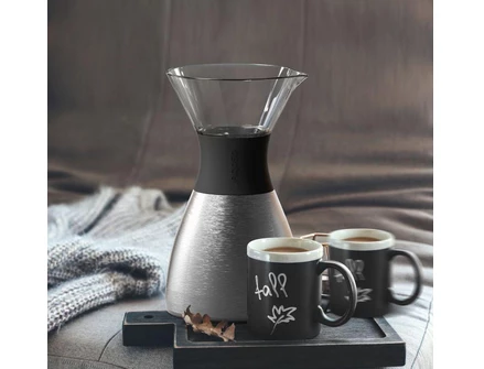 The double wall micromesh stainless steel filter combined with a cone shaped heat-resistant borosilicate glass upper brewing section offer the best start for crafting delicious pour over coffee for expert and beginner brewers alike. Your fresh coffee drips into the insulated carafe which, when closed with the matching heavy duty stainless steel lid will keep drinks hot for up to 12 hours. The heat-resistant rubber grip tops off this unit, making the brewer easy to handle, even when hot, and ensures this is the perfect companion for use in the home, the office, or anywhere else.