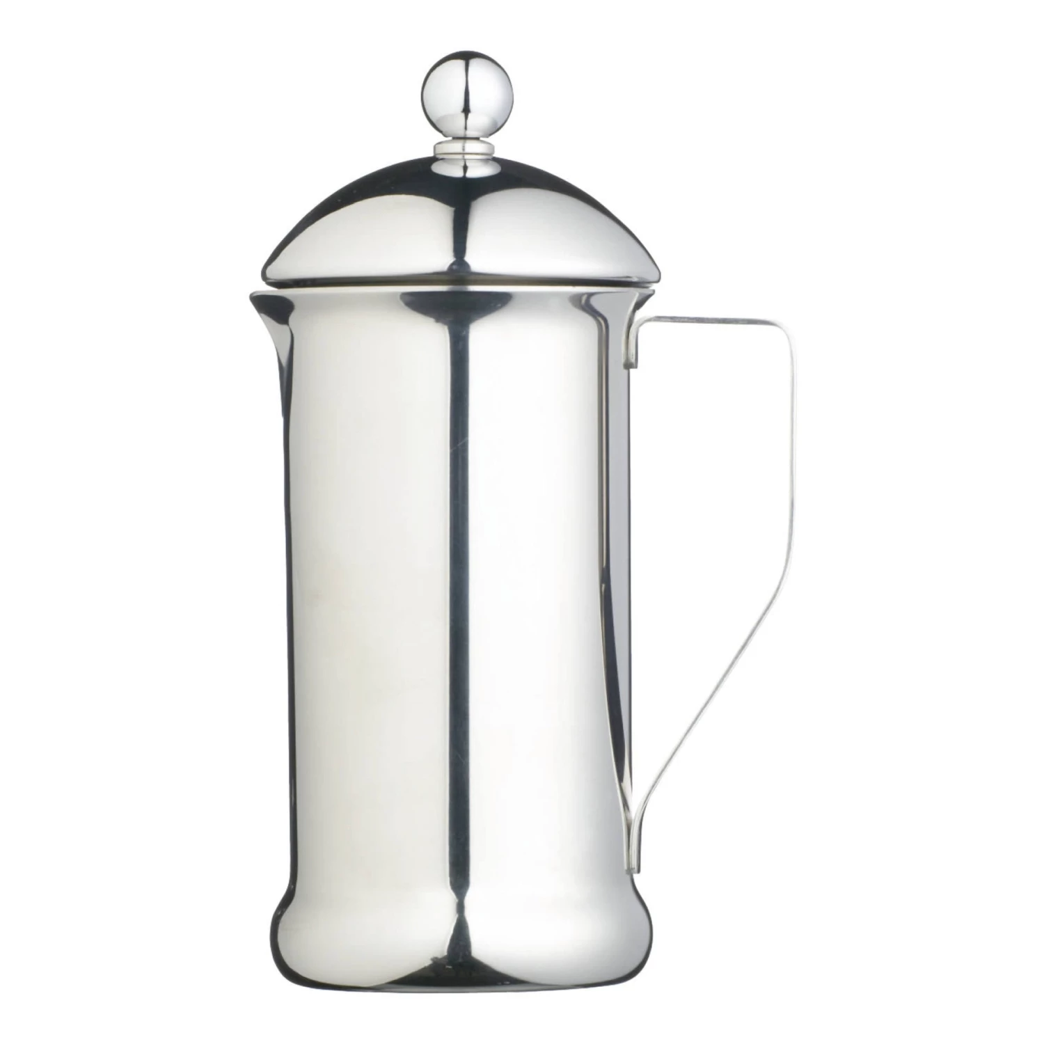 All stainless steel 8 cup cafetiere (cafetiere for four), stainless steel body and lid. Holds 1125ml of liquid. Polished Steel body.