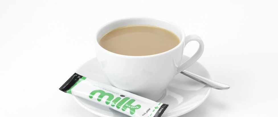 semi-skimmed, fully traceable, 100% farm assured milk, Milk in a Stick is the ideal hygienic format for out-of-home. Developed to be not only strong and flexible for ease of transportation and storage, but also easy to open and pour.