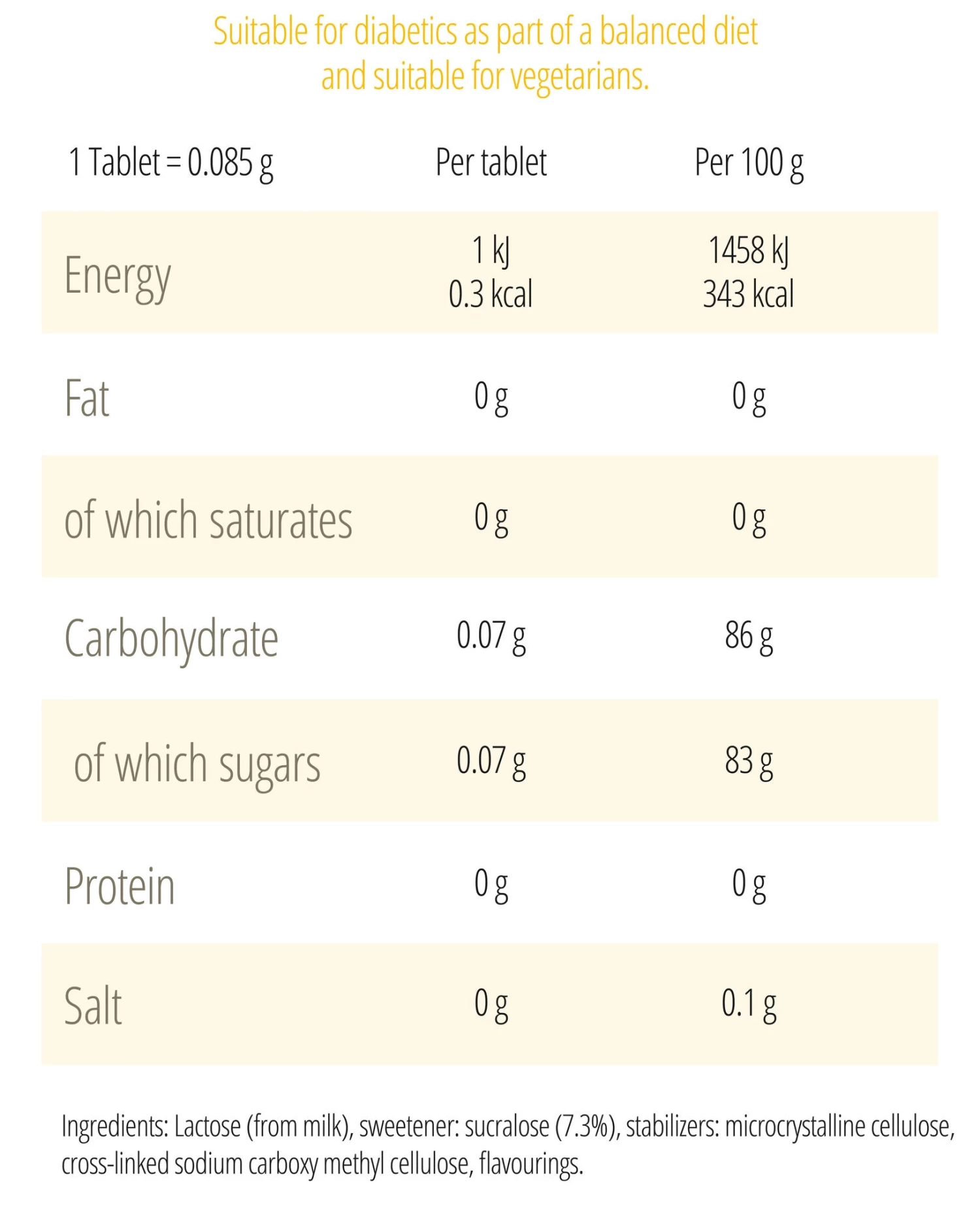 Did you know that you can save calories but still enjoy great sweet taste by using Canderel Yellow Tablets to sweeten your hot drinks? Each tablet is equivalent in sweetness to a teaspoon of sugar but contains zero calories (compared to sugar which contains 20 calories). That means, you can save up to 100 calories a day and 700 calories in a week* just by replacing sugar with Canderel Yellow Tablets in your hot drinks alone! *(based on five hot drinks a day sweetened with one teaspoon of sugar)