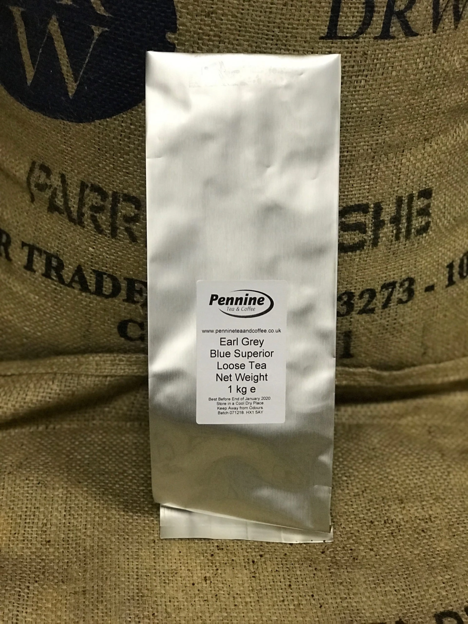 The finest Earl Grey Blue Superior loose tea in bulk 1kg bags for catering use.