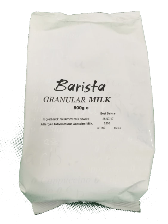 Granulated Milk delivers an authentic quality milk that tastes as good as fresh’. This Granular Milk is virtually fat free and makes superb cappuccino and latte with a thick, creamy head. The natural taste also makes it ideal for tea and coffee. We recommend a 5g/200ml gram throw for coffee and 3g/200g for tea.