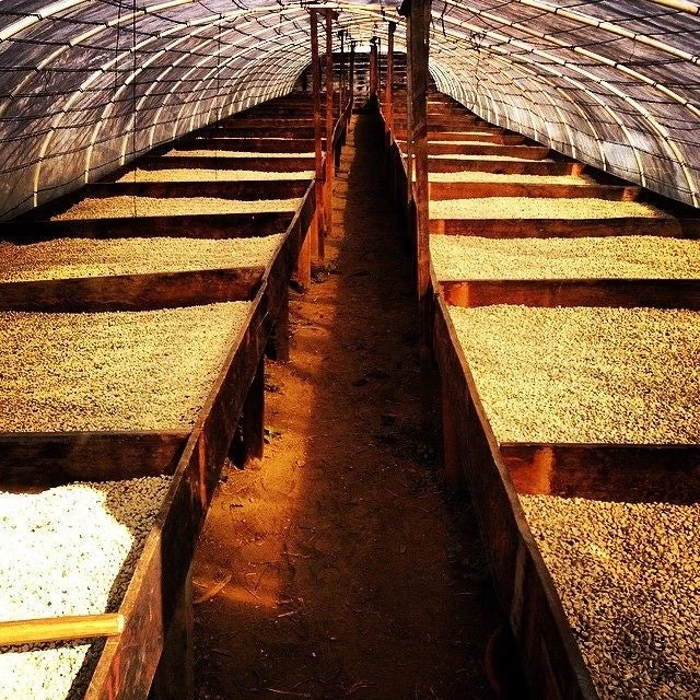 We are blessed with many streams of clean water from the mountain and have a very special microclimate. The cool weather slows coffee maturation and helps to produce sweeter coffees. However, the constant drizzle and high humidity present a challenge for drying. That is why I have built polytunnels to dry all my coffees.