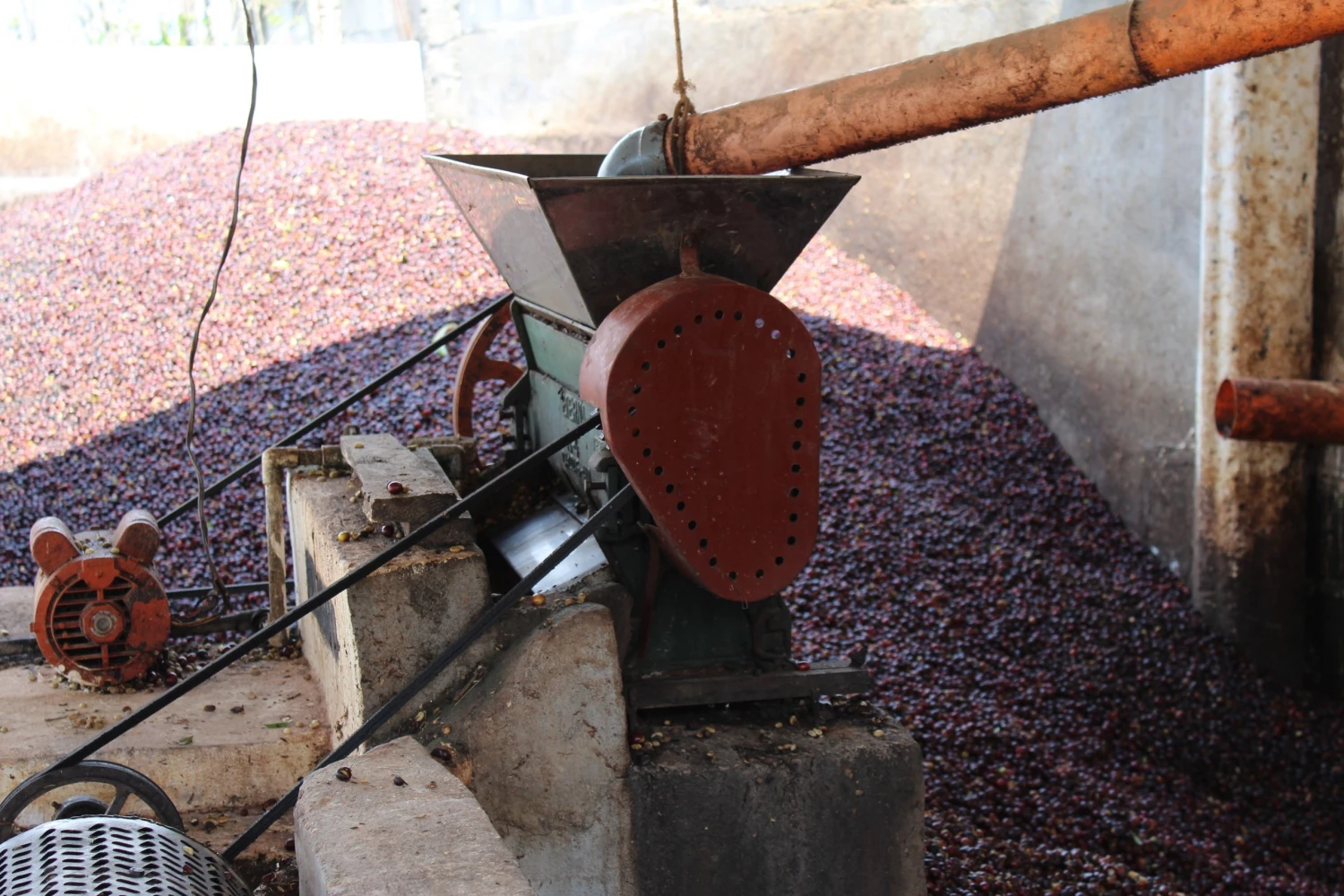 I always start processing my coffees by rinsing the cherries with cold water. The beans are living organisms and are affected by the stress of picking. That bath cools them down. I then ferment the cherries overnight without water and depulp them the following morning.