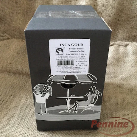 Fairtrade freeze dried instant coffee in one cup sachets ideal for hotel bedrooms, offices and meeting rooms. Box of 250 sachets.