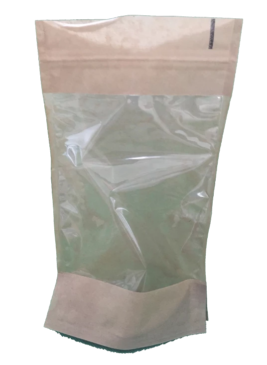 Kraft food grade pouch suitable for coffee, transparent front so you can see the contents. Holds approx 200g of coffee depending on the origin.