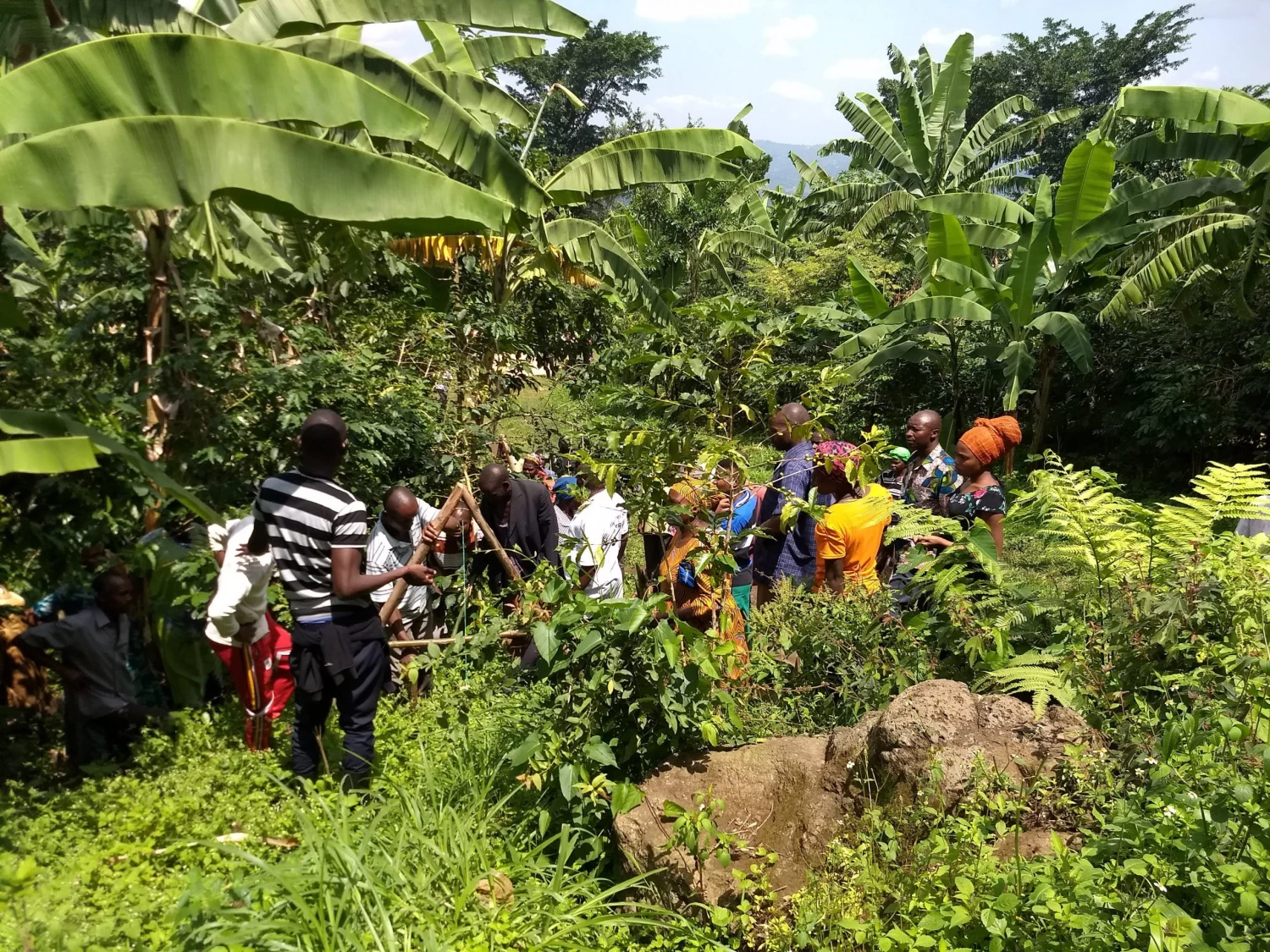 mountain stretching all the way to the buffer zone for the Mount Elgon National Park. The unseasonable rains at the end of January allowed the last coffees of these contributing farmers to ripen nicely and created an extended harvest season. As these farmers live further from The Coffee Gardens’ washing station, farmers whose harvest had already finished helped by carrying the coffee down to our processing station, earning extra income. Most of these contributing