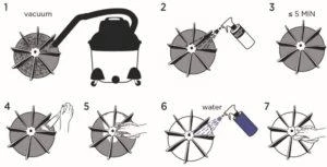 - Vacuum surfaces prior to applying cleaner in order to remove loose debris