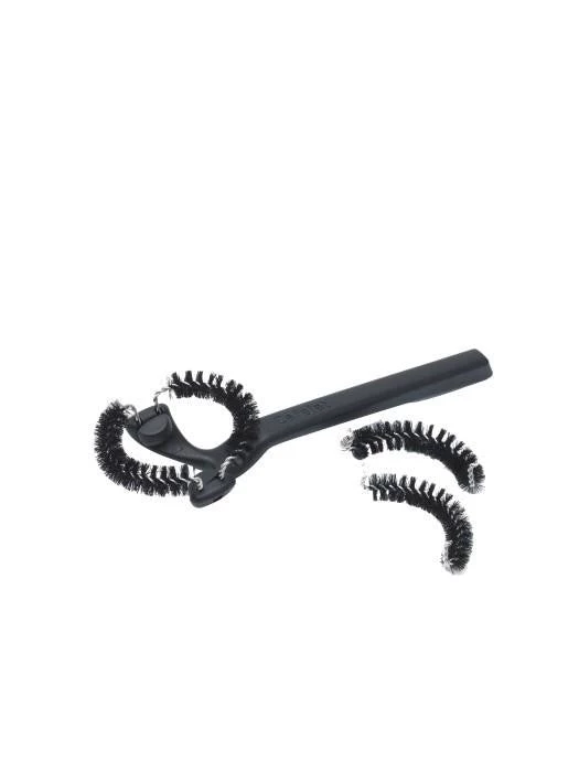 Cleans machine group head by locking into the group like a filterholder. Includes a spare set of bristles