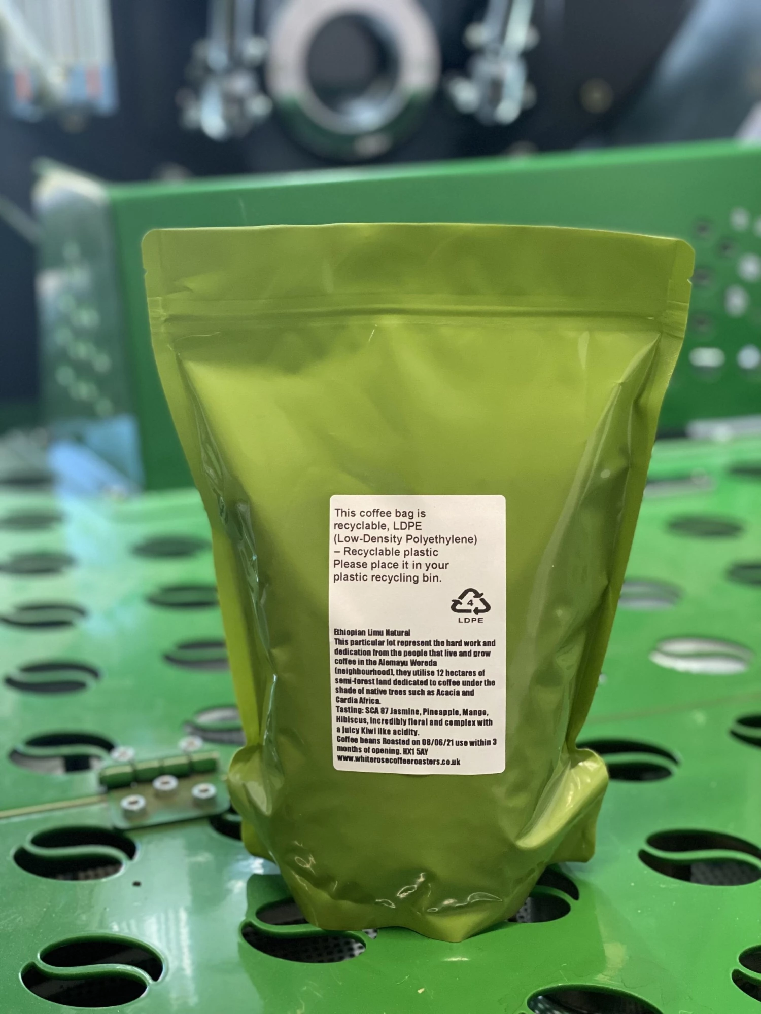 Our coffee bags are green – each coffee bag is recyclable, LDPE (Low-Density Polyethylene) – Recyclable plastic, just place it in your plastic recycling bin.