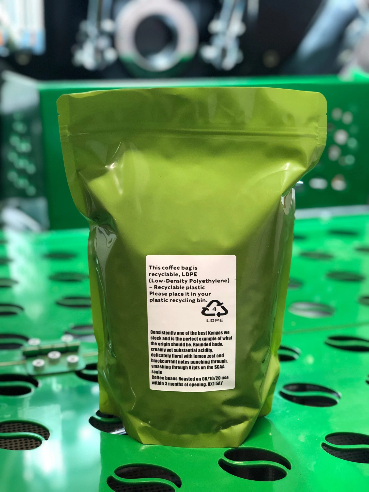 Our coffee bags are green – each coffee bag is recyclable, LDPE (Low-Density Polyethylene) – Recyclable plastic, just place it in your plastic recycling bin.