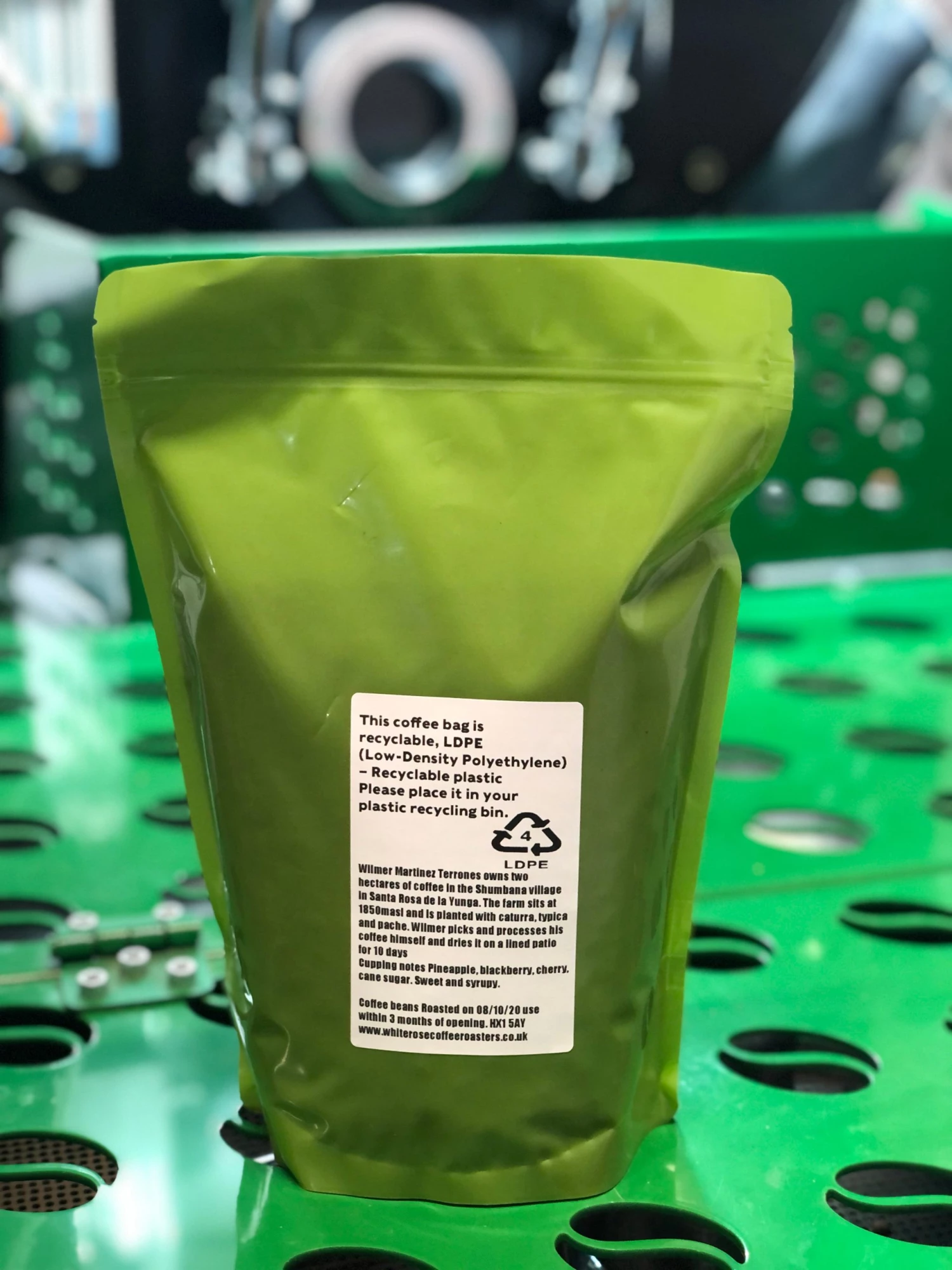Our coffee bags are green – each coffee bag is recyclable, LDPE (Low-Density Polyethylene) – Recyclable plastic, just place it in your plastic recycling bin.