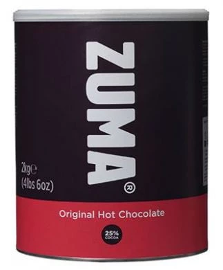 Zuma Original Hot Chocolate powder, mix with hot milk for a luxury smooth hot chocolate. Can also be used for making Mocha (espresso and hot chocolate). Packed in a 2kg tub with re-sealable lid.